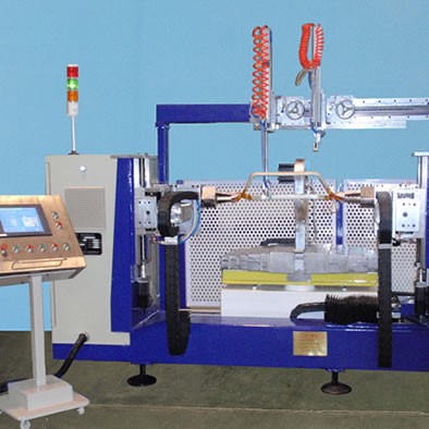 SKDB-120和SKBD200采用全數(shù)字控制。主要適用于中小形定子線圈的絕緣包扎。操作時(shí),只需將漲型后的線圈放置在已調(diào)整好位置的氣動(dòng)夾持器上。纏好絕緣帶,按動(dòng)啟動(dòng)按鈕即可自動(dòng)對(duì)線圈進(jìn)行包帶。包帶完一邊后自動(dòng)翻邊包另一邊。該機(jī)的包帶頭可根據(jù)線圈的大小、形狀、按指令進(jìn)行各種不同角度,不同速度的包帶,包帶的張力的調(diào)整可通過(guò)觸摸屏設(shè)定,該機(jī)具有自動(dòng)、手動(dòng)功能,對(duì)于大型線圈還設(shè)有機(jī)械手抓持防震動(dòng)功能,同時(shí)還有多點(diǎn)安全保護(hù)設(shè)置。